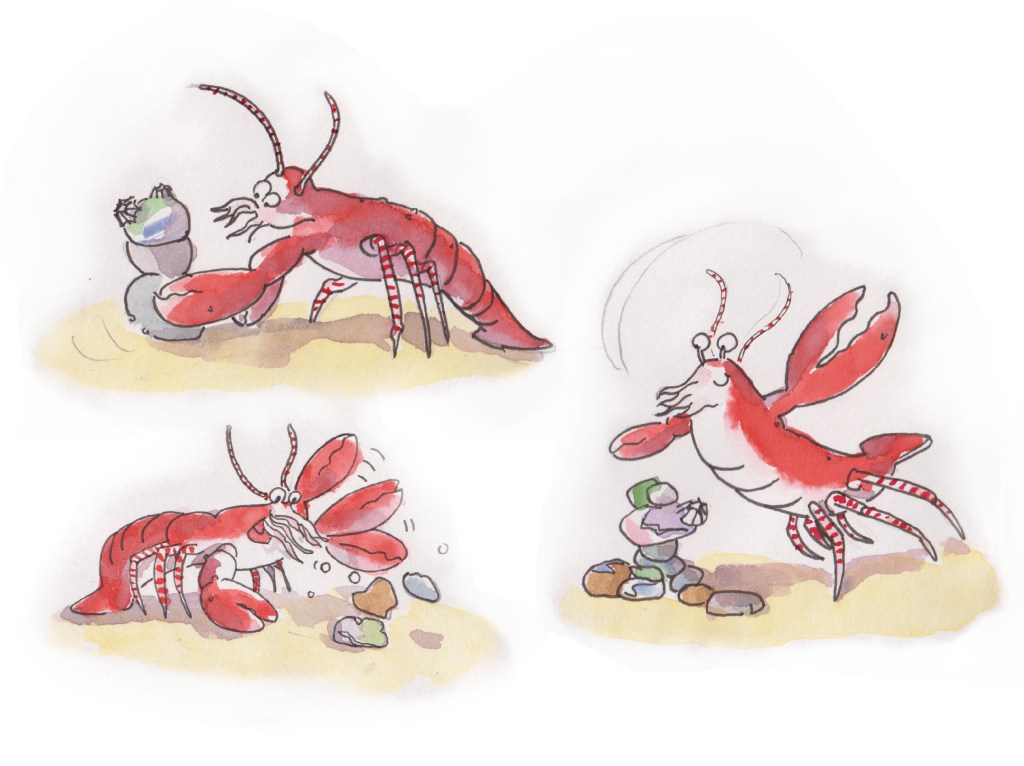 My favourite story from the ‘On The Beach’ short story collection is The Talent Show. A lovely tale and fun to draw, this story follows the drama of Lobby, Crab, Starfish and many more as they prepare for the Talent Show. Each character has their own endearing quality, making it a heart-warming story for all. Vote with your claw for your favourite critter to win!